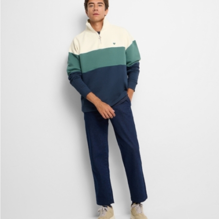 Sudadera Relaxed Fit Media Cremallera Bloques Azul Verde Silbon