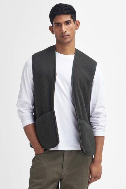 Chaleco Warm Pile Cremallera color verde sage de Barbour hombre. Chaleco confeccionado en acrílico diseñado para proporcionar calor y aislamiento acoplándolo a las clásicas chaquetas Barbour. Cuenta con cierre central por cremallera vista y aberturas laterales para aportar mayor movilidad y comodidad. Dispone de amplios bolsillos frontales tipo parche.