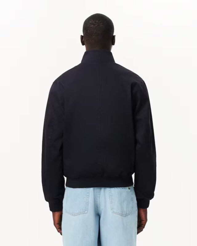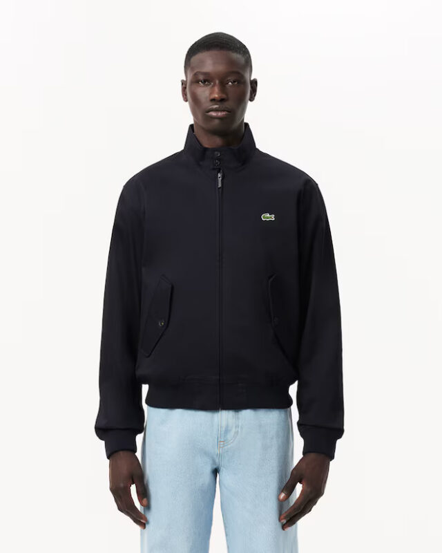 Esta chaqueta Harrington está confeccionada en sarga de algodón elástica y presenta un protector cuello alto y tres bolsillos: un diseño práctico y con estilo. Una prenda versátil que podrás llevar con looks formales e informales.