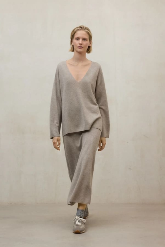 Color dark sand melange (beige jaspeado): sobrio, elegante y combinable