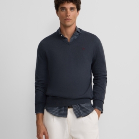 El diseño clásico con cuello pico y manga larga convierte a este jersey en una pieza versátil que puedes combinar con camisas para un look más formal o con camisetas básicas para un estilo casual. Además, cuenta con un distintivo bordado de raquetas en el torso en color azul marino que aporta un toque deportivo y elegante característico de la marca Silbon.