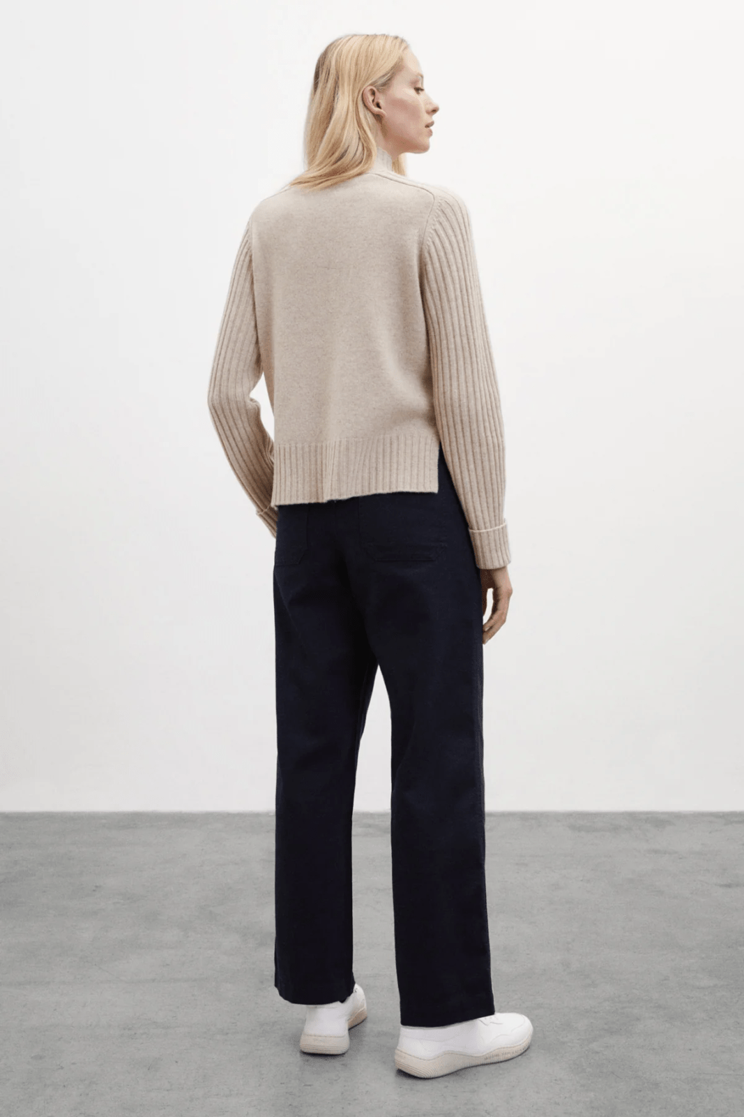 El jersey de punto Eucalipto está hecho de Lana reciclada 100%, tejido que reutilizamos en ECOALF para evitar así el uso de material virgen de origen animal. Además, de esta manera conseguimos reducir el consumo de recursos ofreciendo prendas de alta calidad que promueven la Economía Circular. Un jersey cómodo y abrigado que combina moda y sostenibilidad.