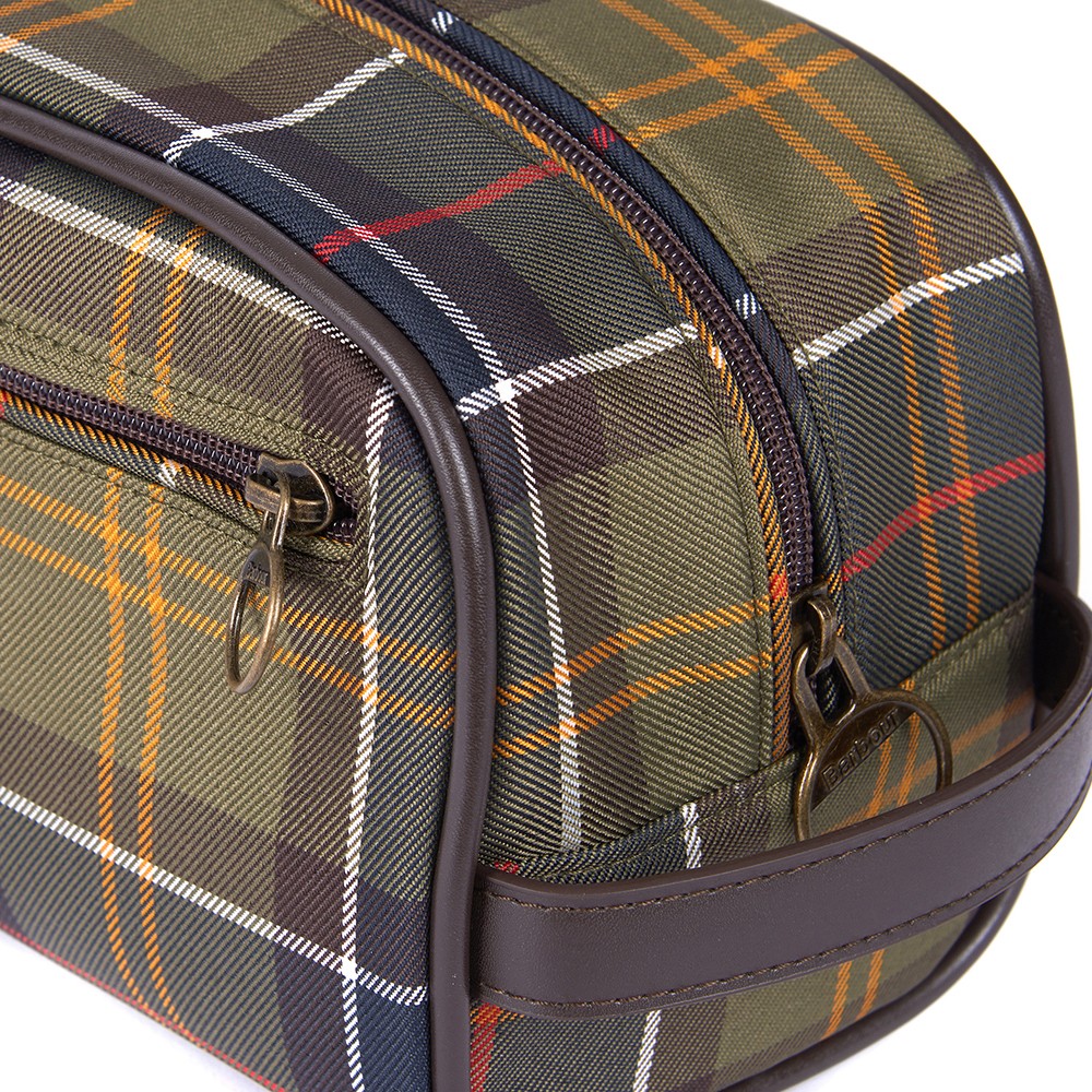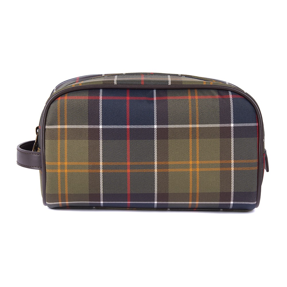 Neceser Tartan clásico verde de Barbour. Este neceser dispone de cierre con cremallera y bolsillo frontal con cremallera exterior con ribete de piel sintética y asa. Con etiqueta de la marca en el frente exterior. Tamaño: 24 cm de ancho x 12 cm de profundidad x 14 cm de alto. Básico para tus viajes.