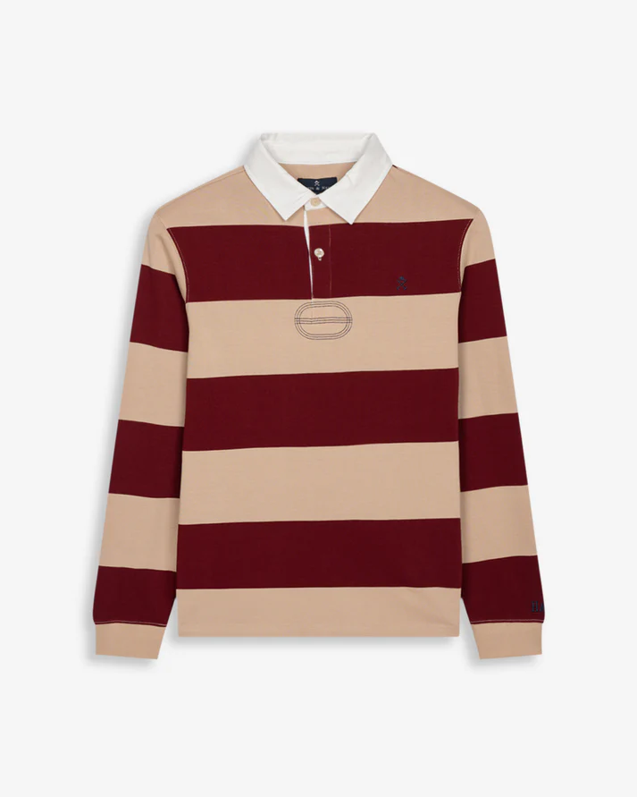 El Polo Rugby Burgundy reinventa el clásico estilo college con un aire moderno y sofisticado. Confeccionado en 100% algodón, este polo de manga larga destaca por su diseño de rayas anchas bicolor, que aporta carácter sin perder elegancia. Su cuello de sarga en contraste y los detalles cuidados —como el bordado discreto en el pecho y los puños acanalados— refuerzan su esencia preppy con un guiño deportivo.