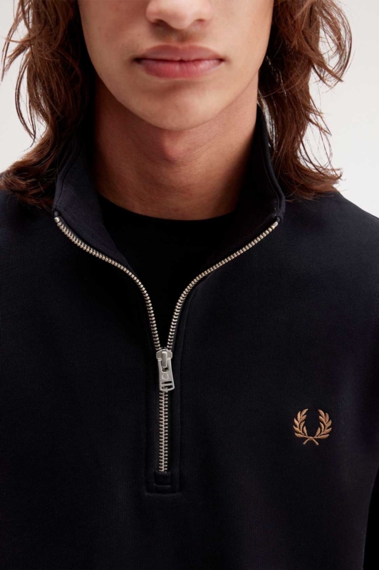 La sudadera con media cremallera es una prenda esencial para el armario masculino moderno: sobria, versátil y con el carácter discreto pero reconocible que solo Fred Perry sabe ofrecer.